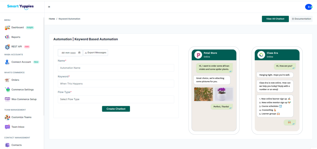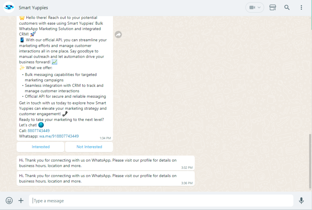 - Besides chatbot, SmartYuppies, provides WhatsApp automation trough which you can send marketing messages for Birthday, Anniversary & Events reminders. You can schedule up to 5 messages before or after event and thus convert a lot of customers.
